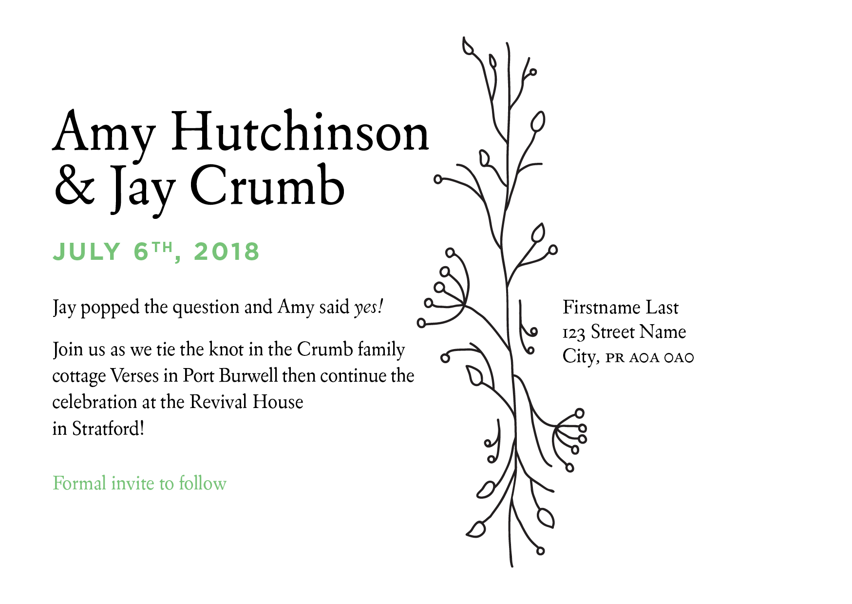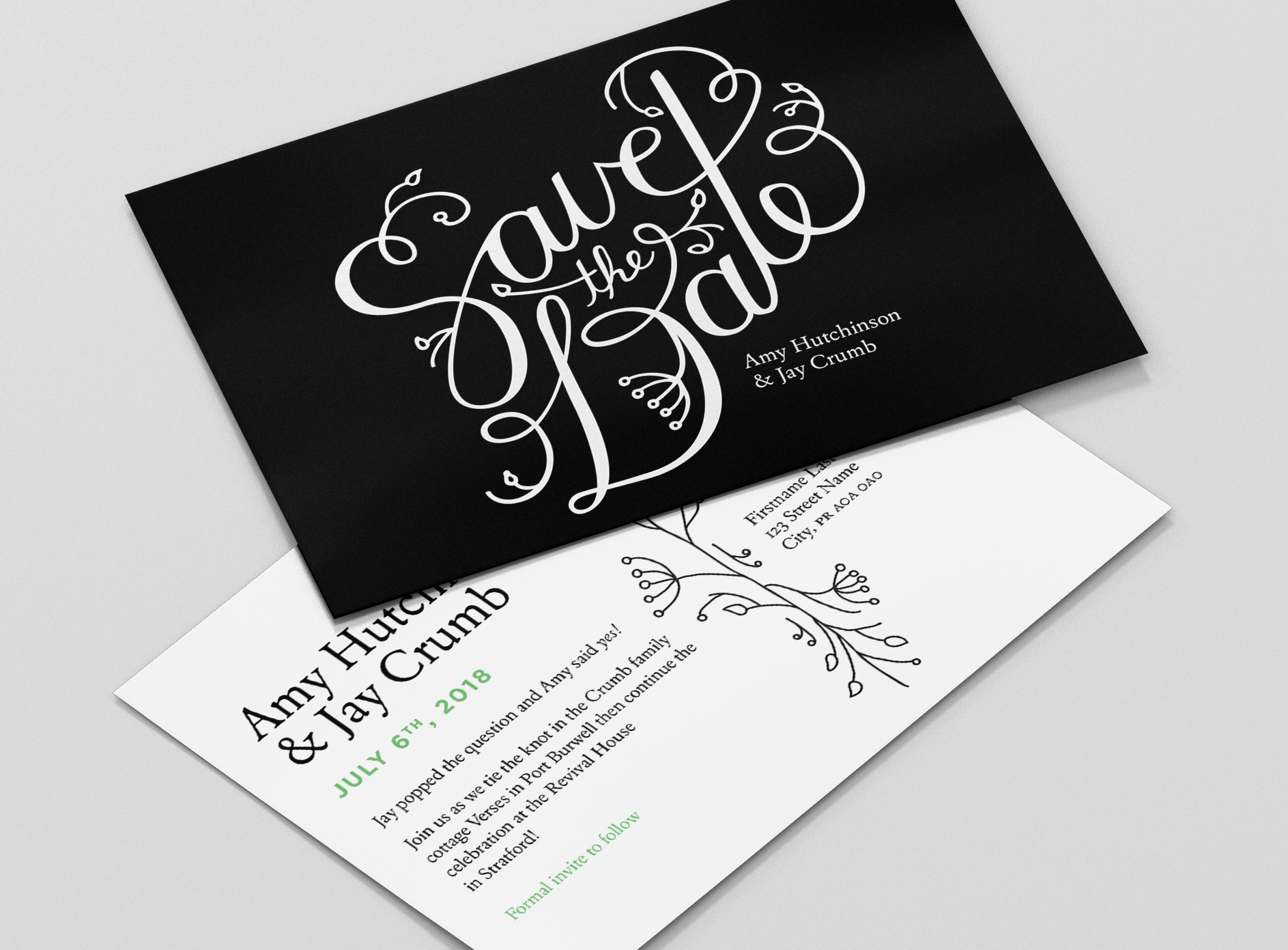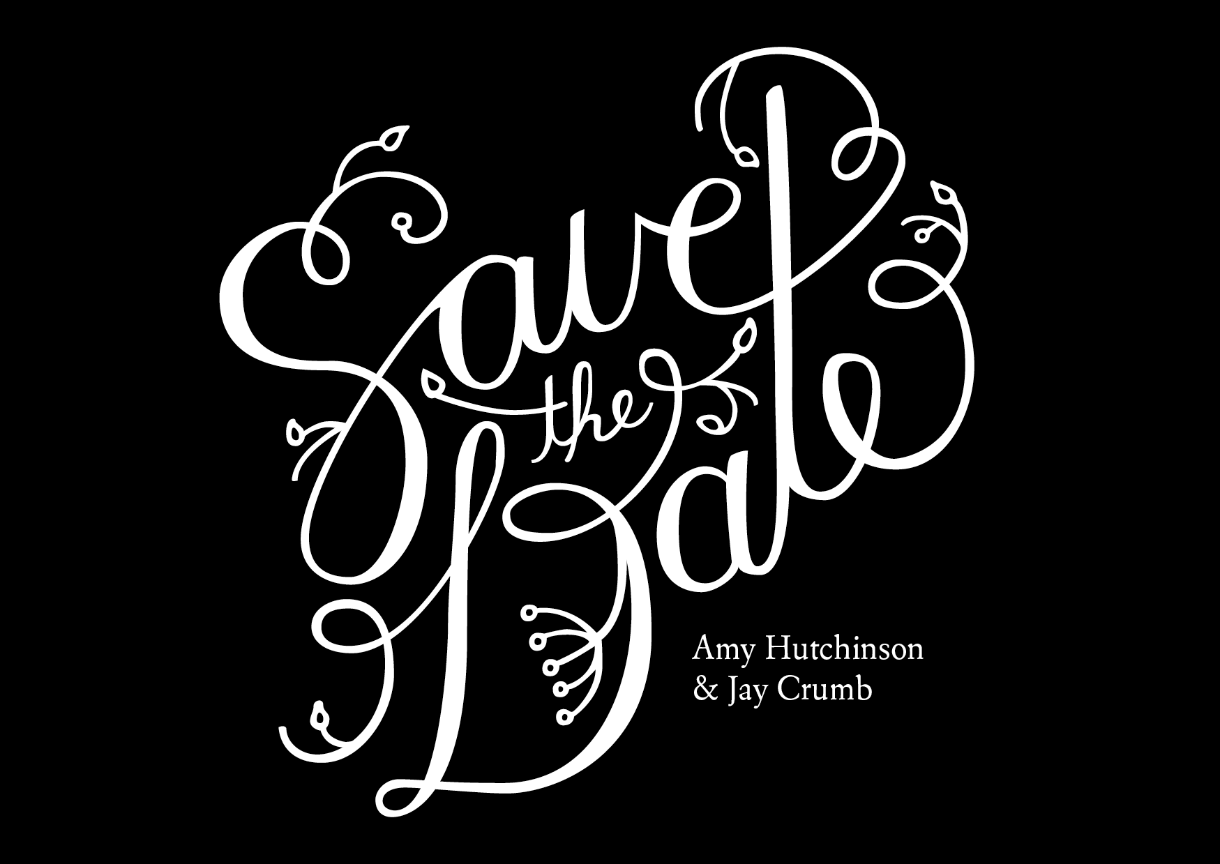 Amy and Jay wanted something elegant but a little bit fun for their Save the Date postcards, so we started with a few lettering sketches and worked in a playful floral flourish.
