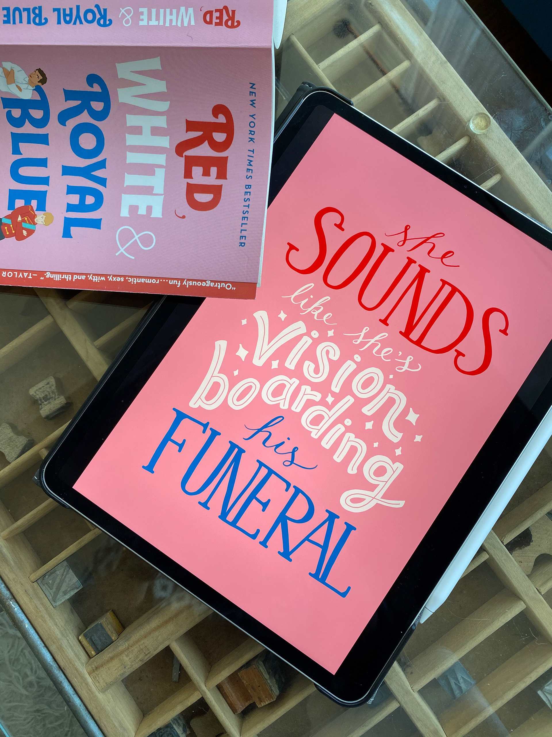 Red, White & Royal Blue Book Quote Lettering
