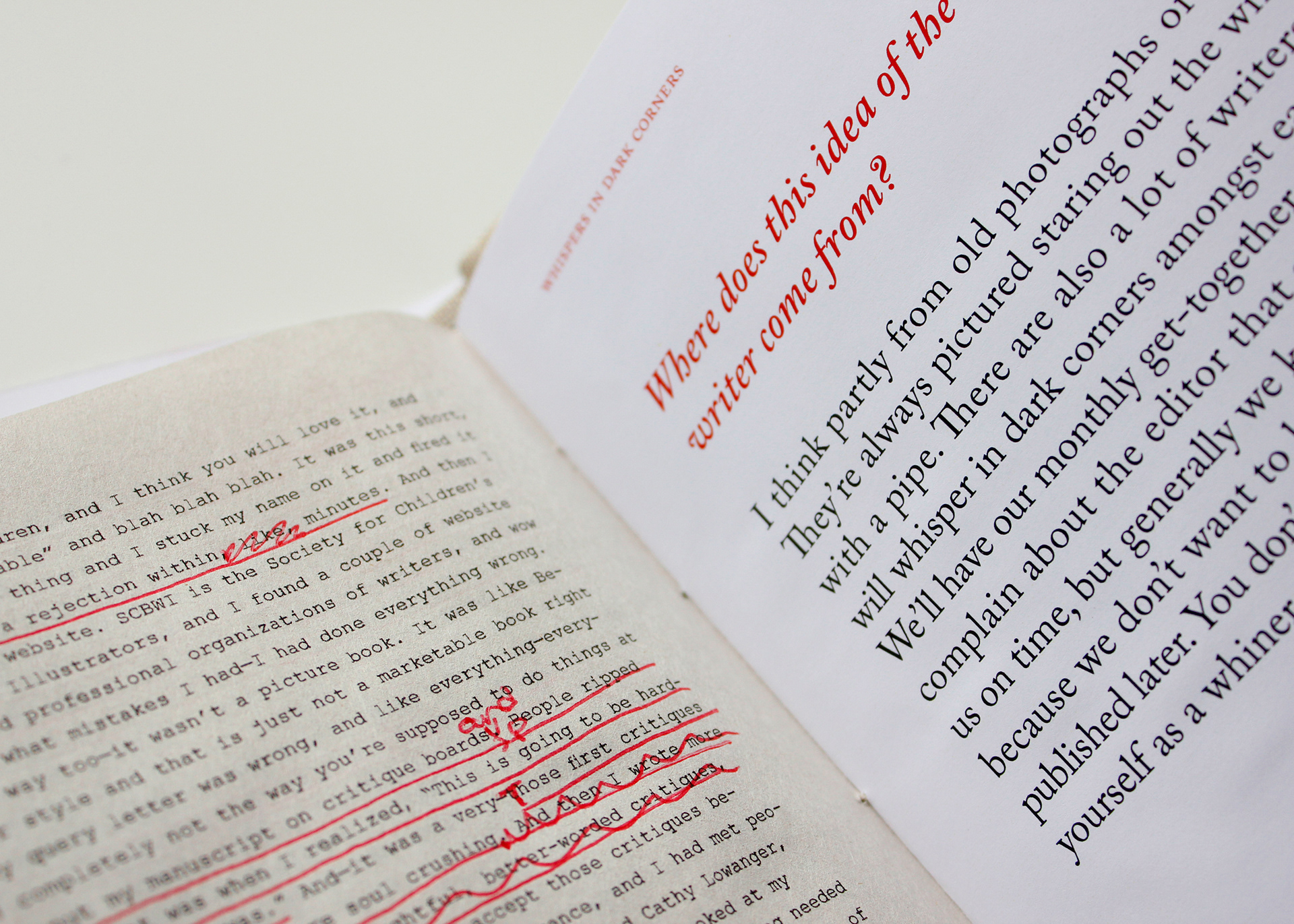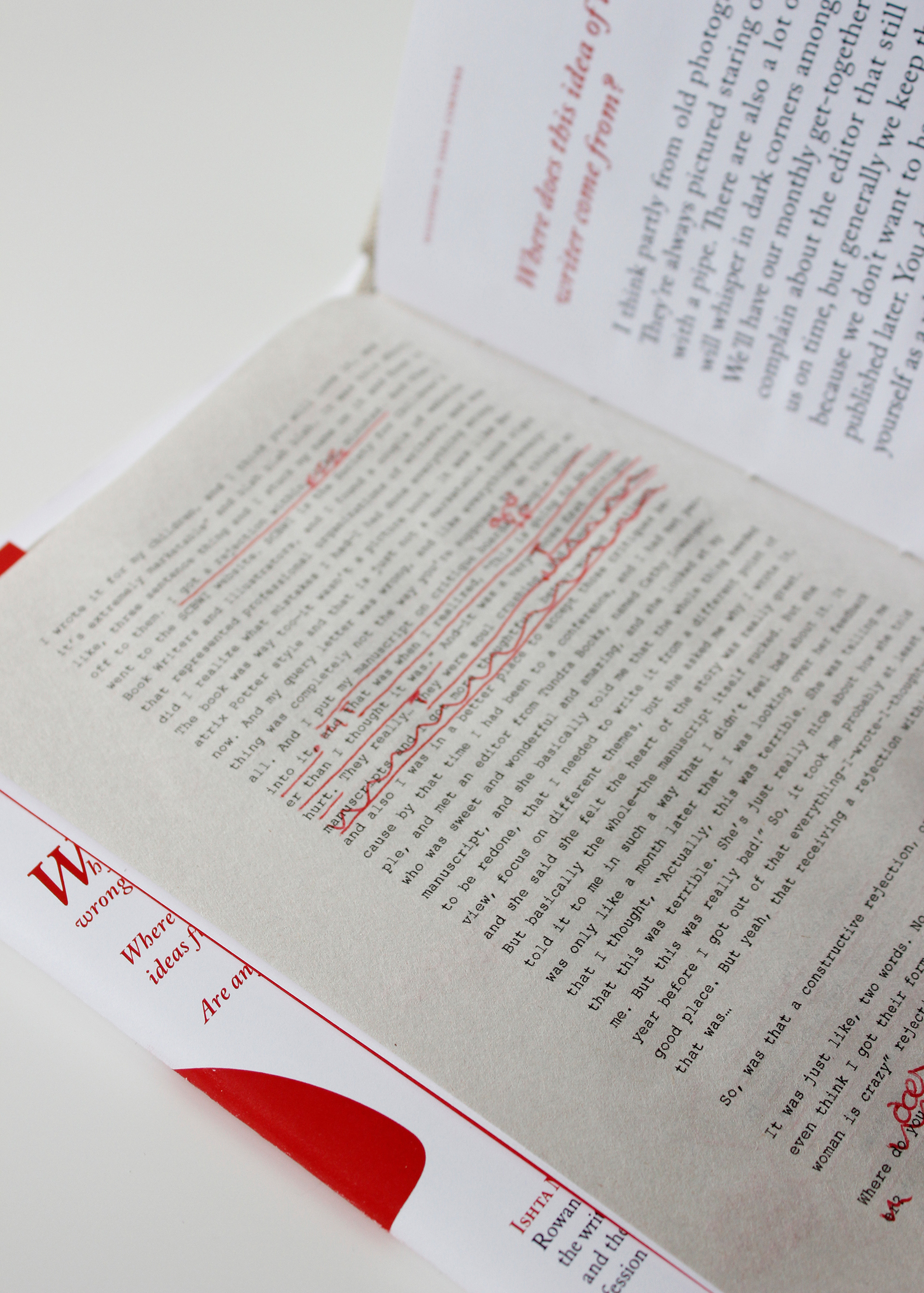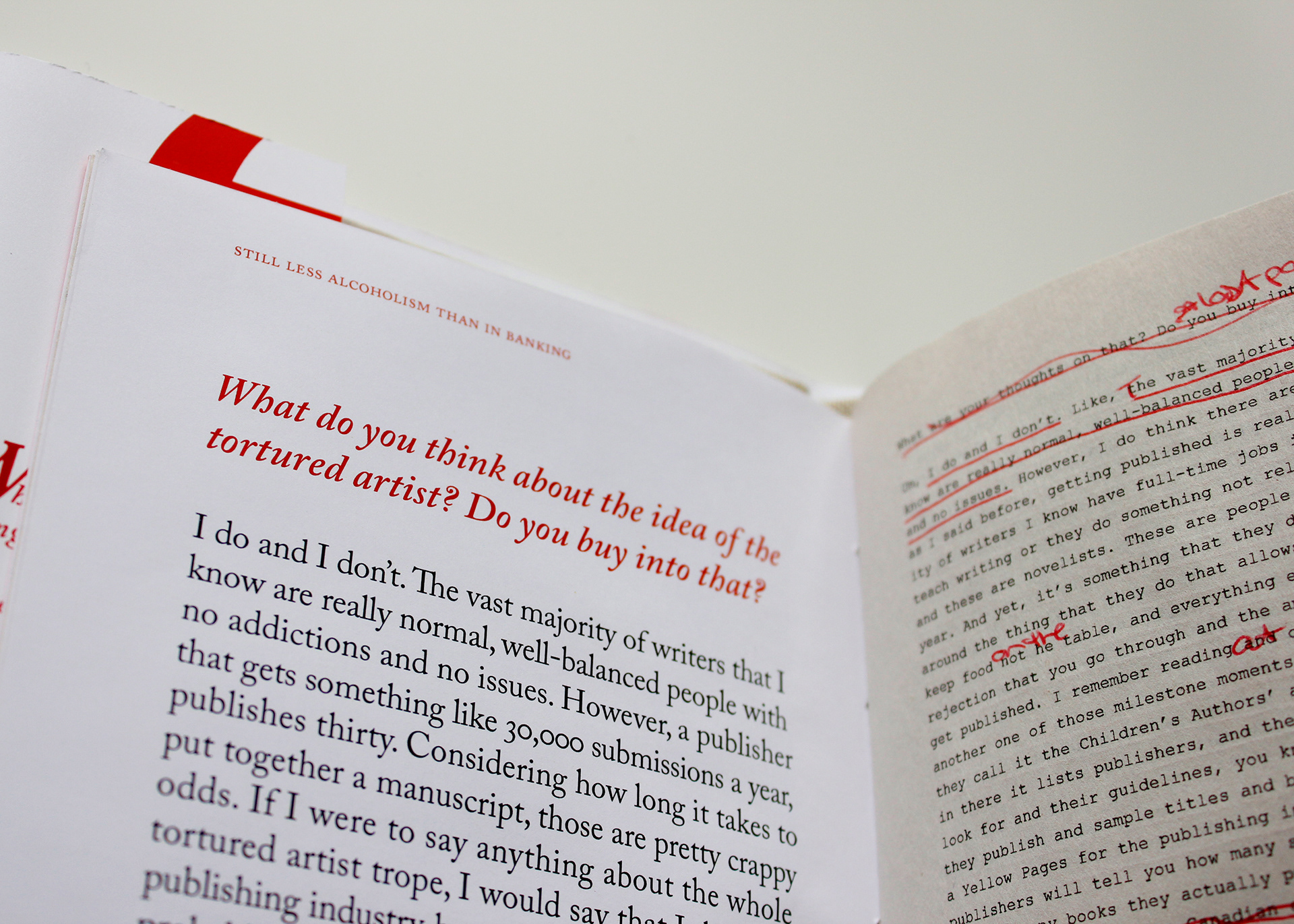 ReVision is a book designed to challenge common perceptions of writing as a profession, from the tortured soul to the notion that a completed manuscript equates to publication. Based around a recorded conversation shared with author Ishta Mercurio, ReVision presents the final text of the book side-by-side with the original conversation transcript, covered in red markings indicating all the changes that occurred from start to finish in order to reveal the often-hidden challenges and complexities of writing.