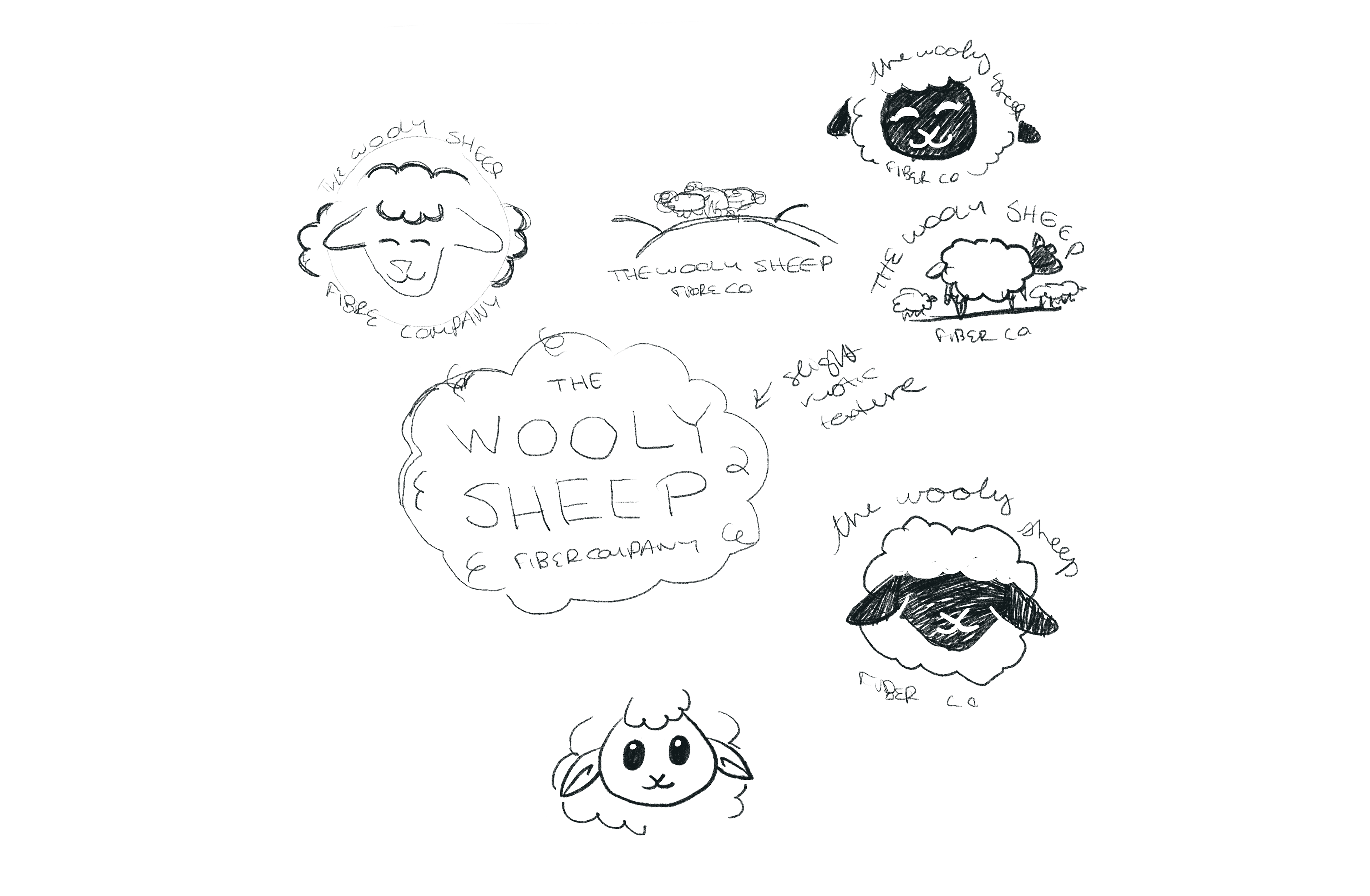 Logo design for Wooly Sheep Fiber Co., a forthcoming local yarn store in Pennsylvania. The client was looking for something warm and welcoming that would immediately convey what the business is about to passersby in the area, and to connect the natural fibers in the store with their original source. The final design gives the shop a friendly mascot, perfect for merchandise.