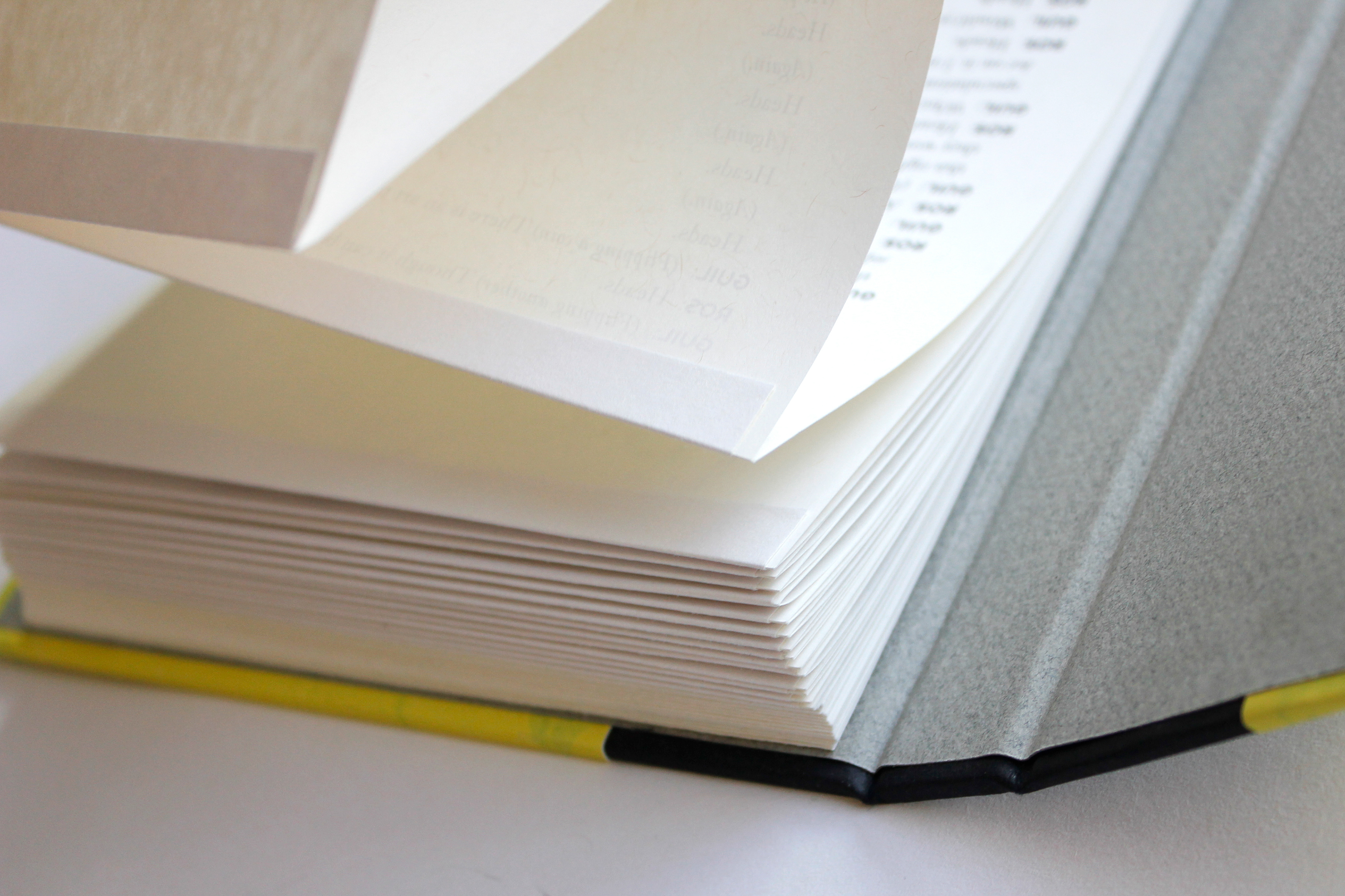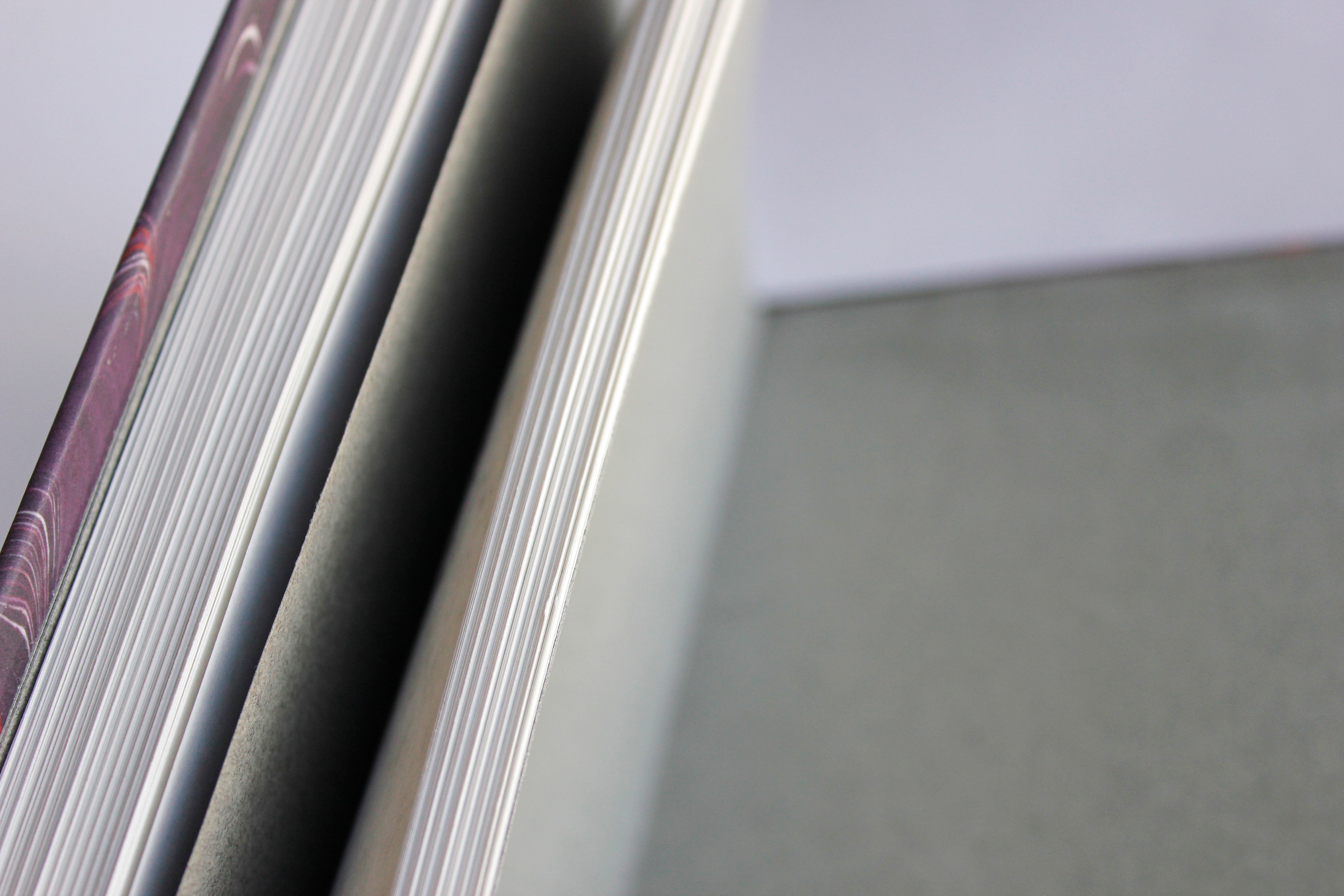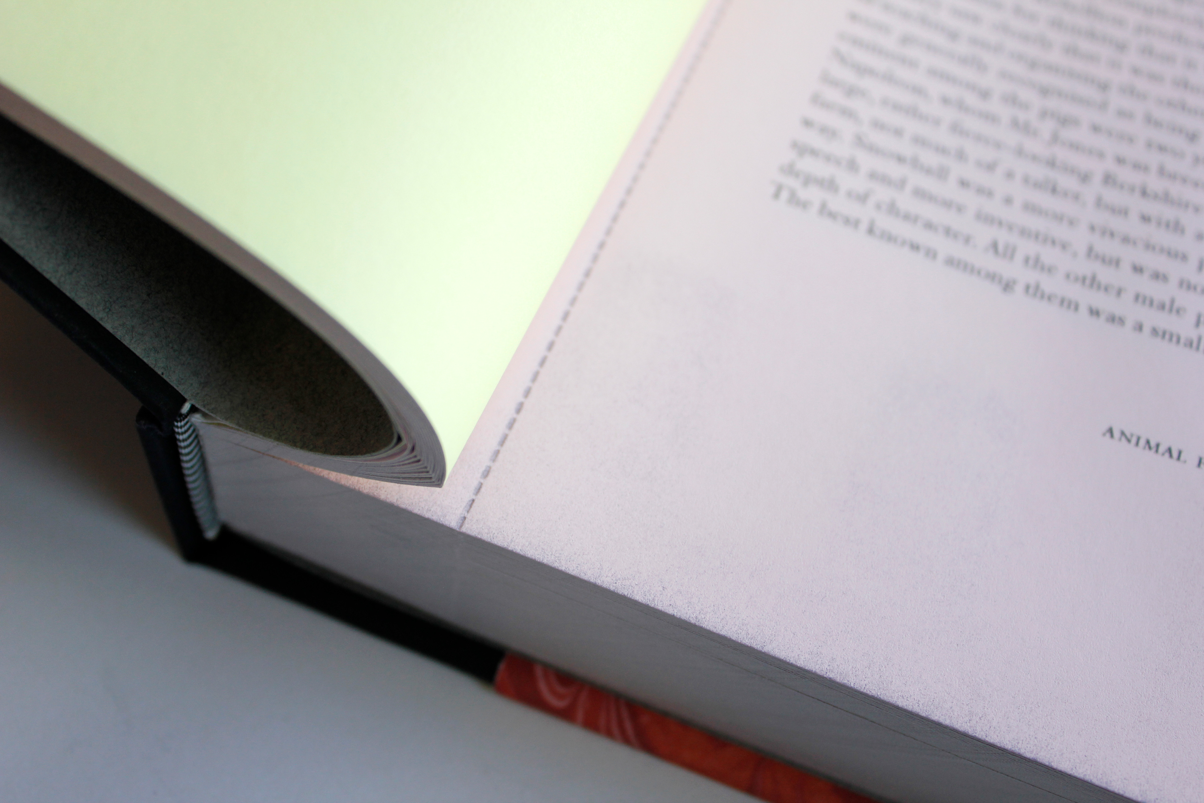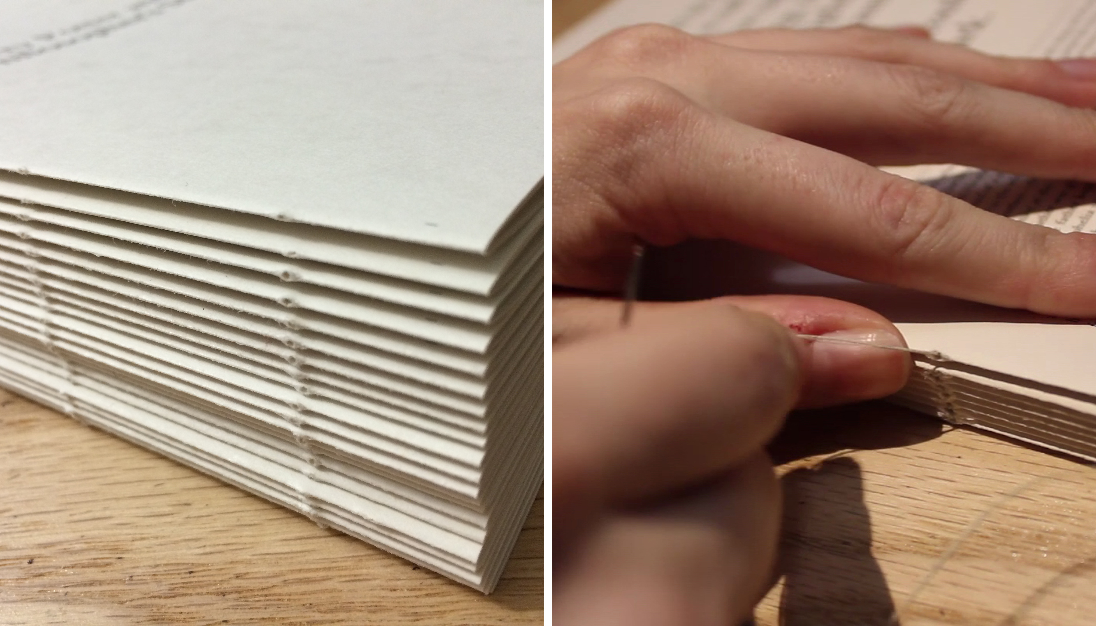 The searchable book and skimmable book both used a traditional casebinding stitch.