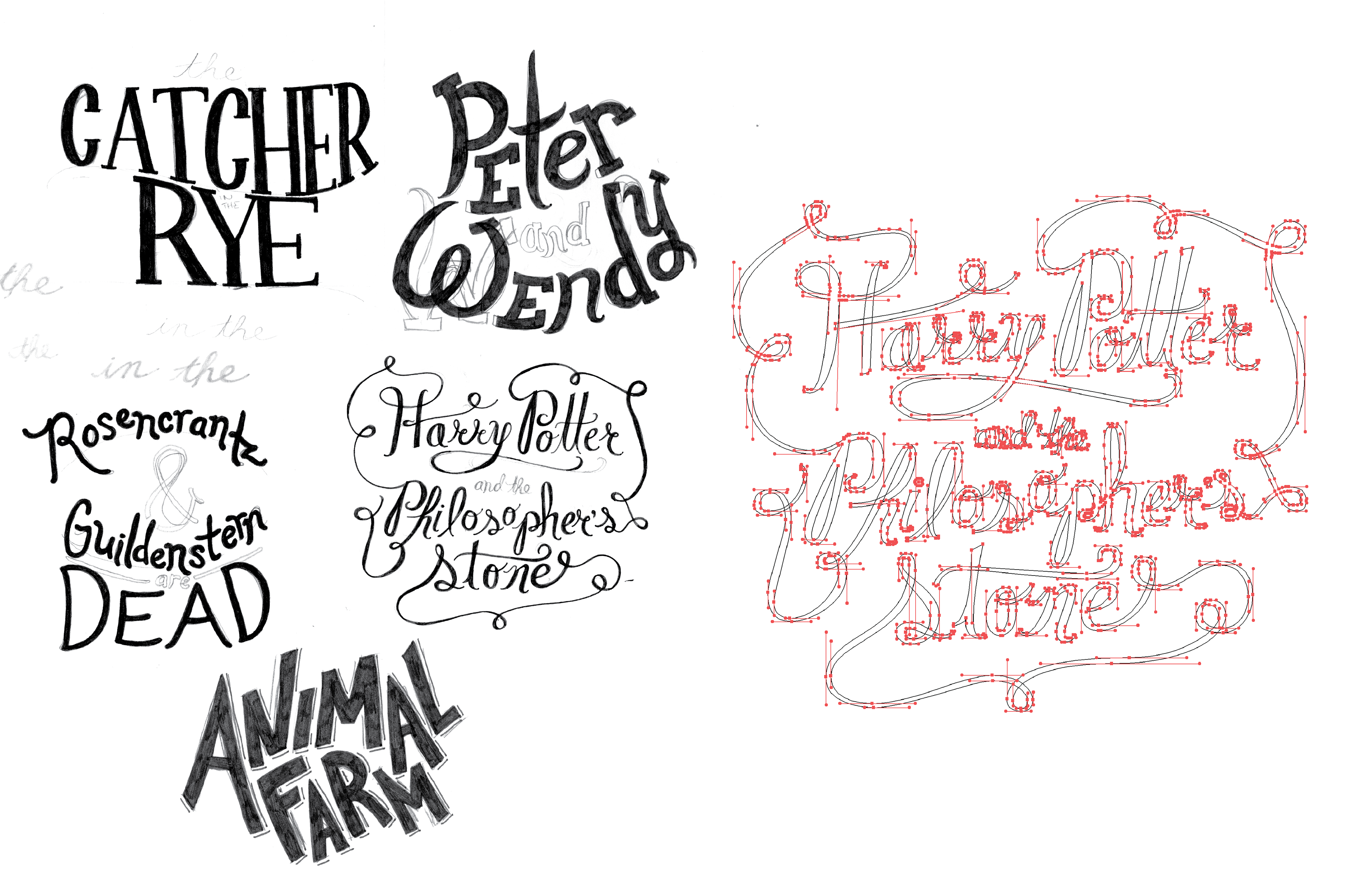 As part of the exploration of print's tactile appeal, the creation of the series involved manual, traditional process at every stage, from design through printing through binding. Each title began as a hand drawn rough which was then scanned and refined in Illustrator.