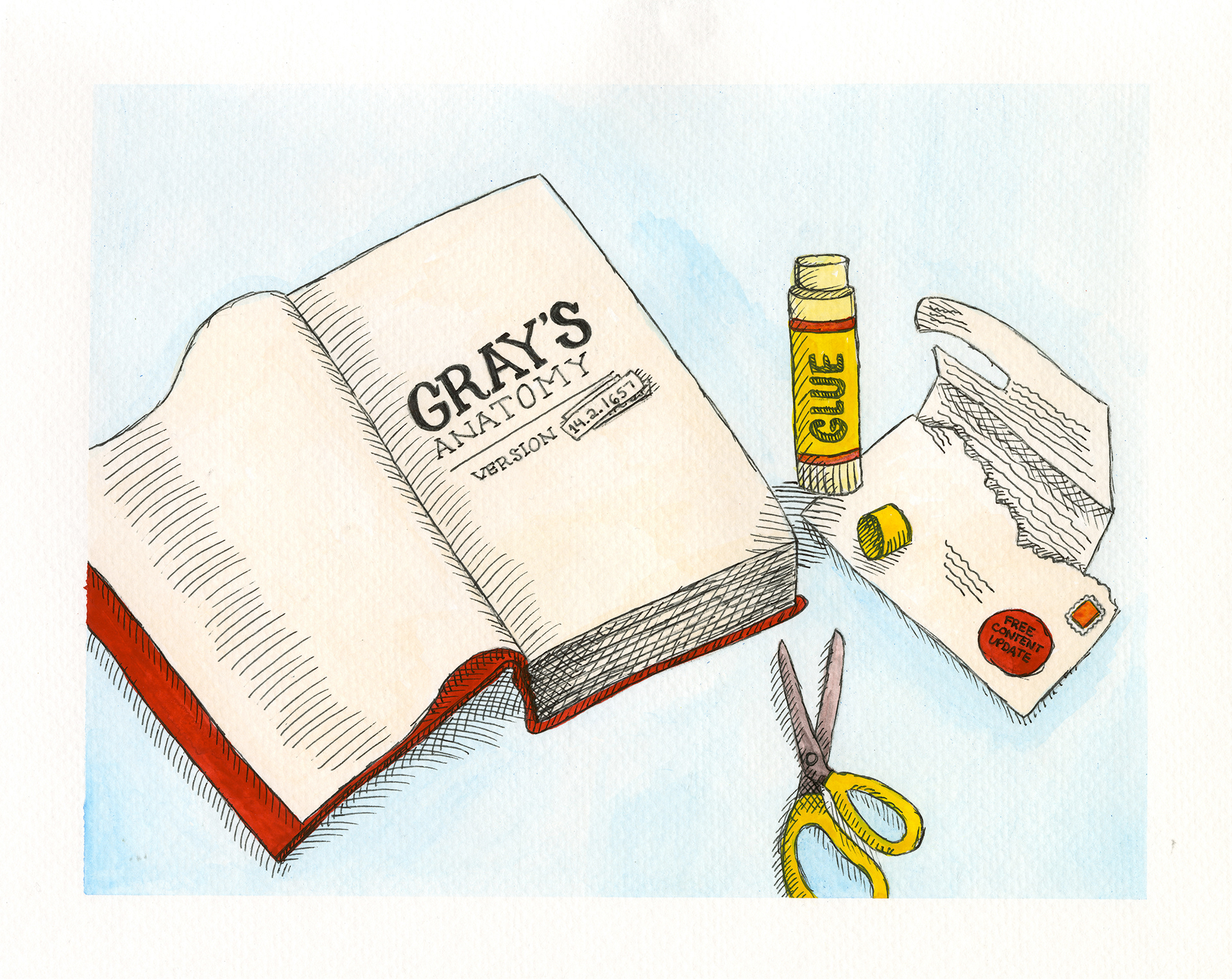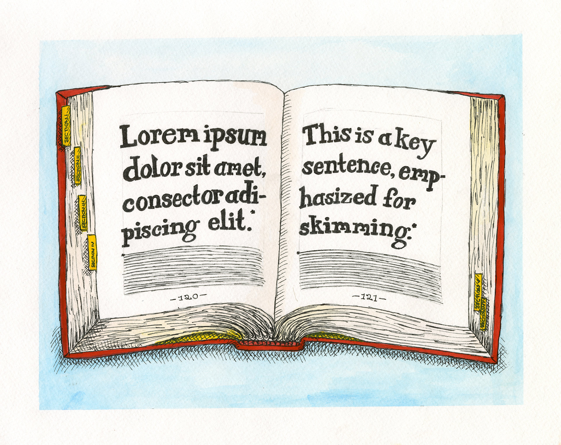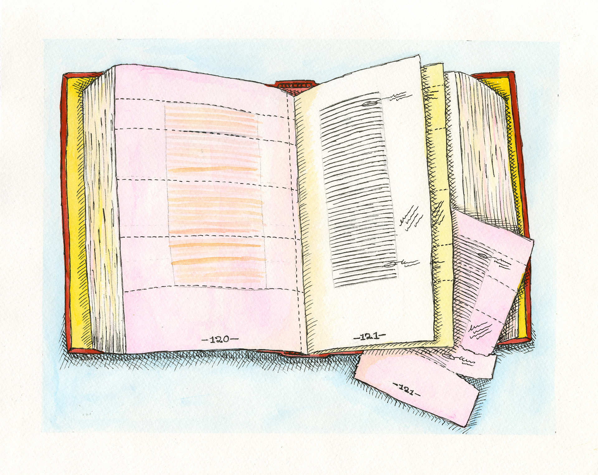 The project first began to take shape through a series of illustrations depicting how I envisioned various characteristics of digital texts would adapt to the printed page.