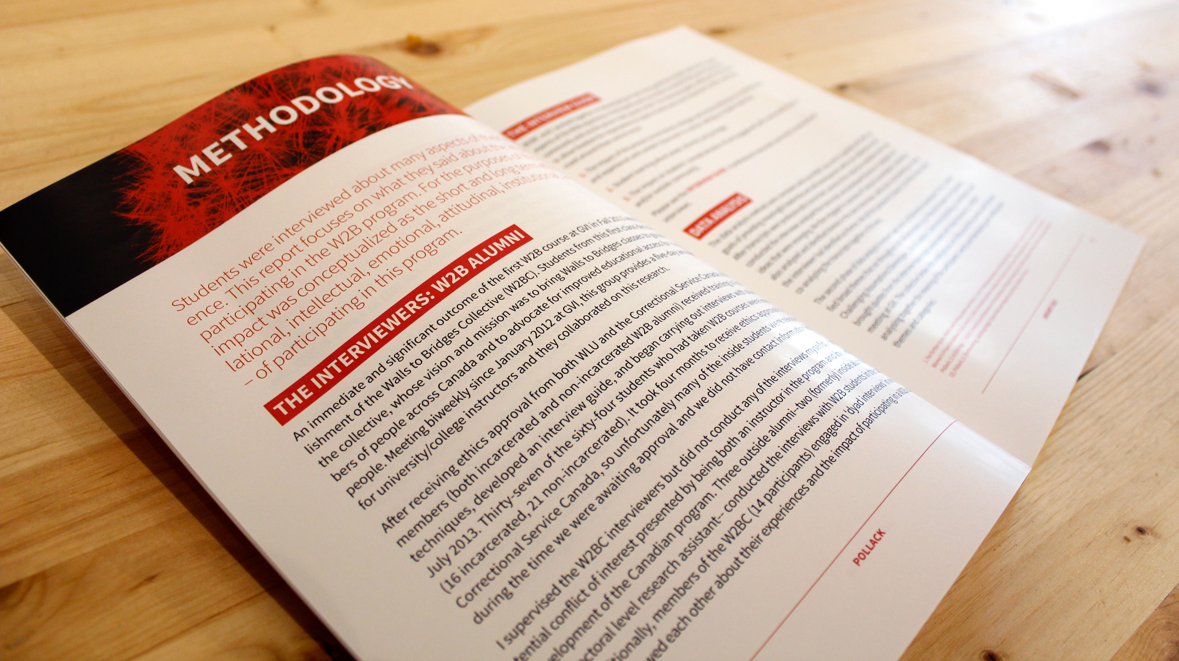 The project also includes an editorial piece, a report detailing the methods and effectiveness of the Walls to Bridges program, which was produced as a printed booklet.