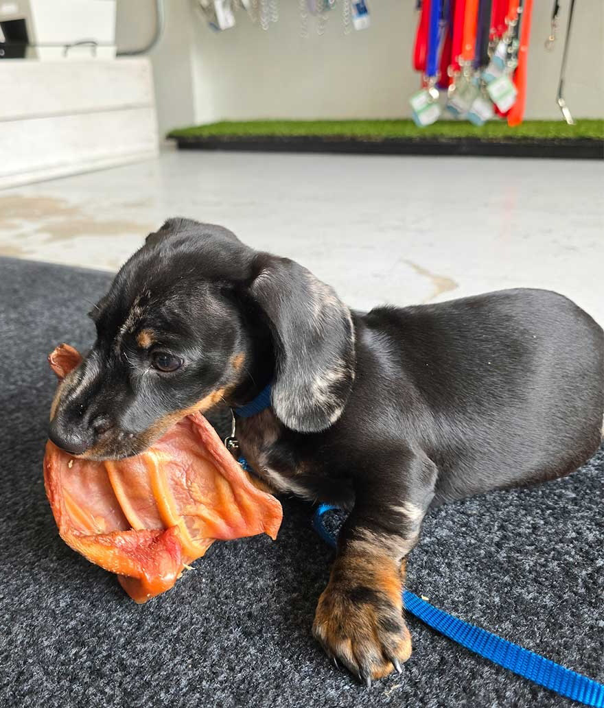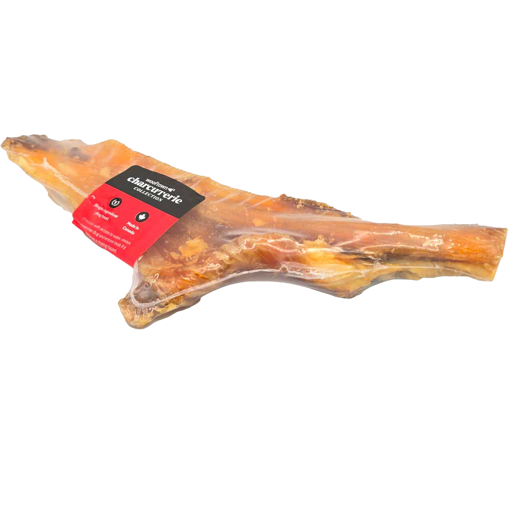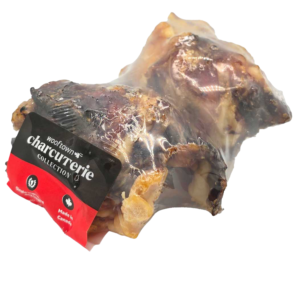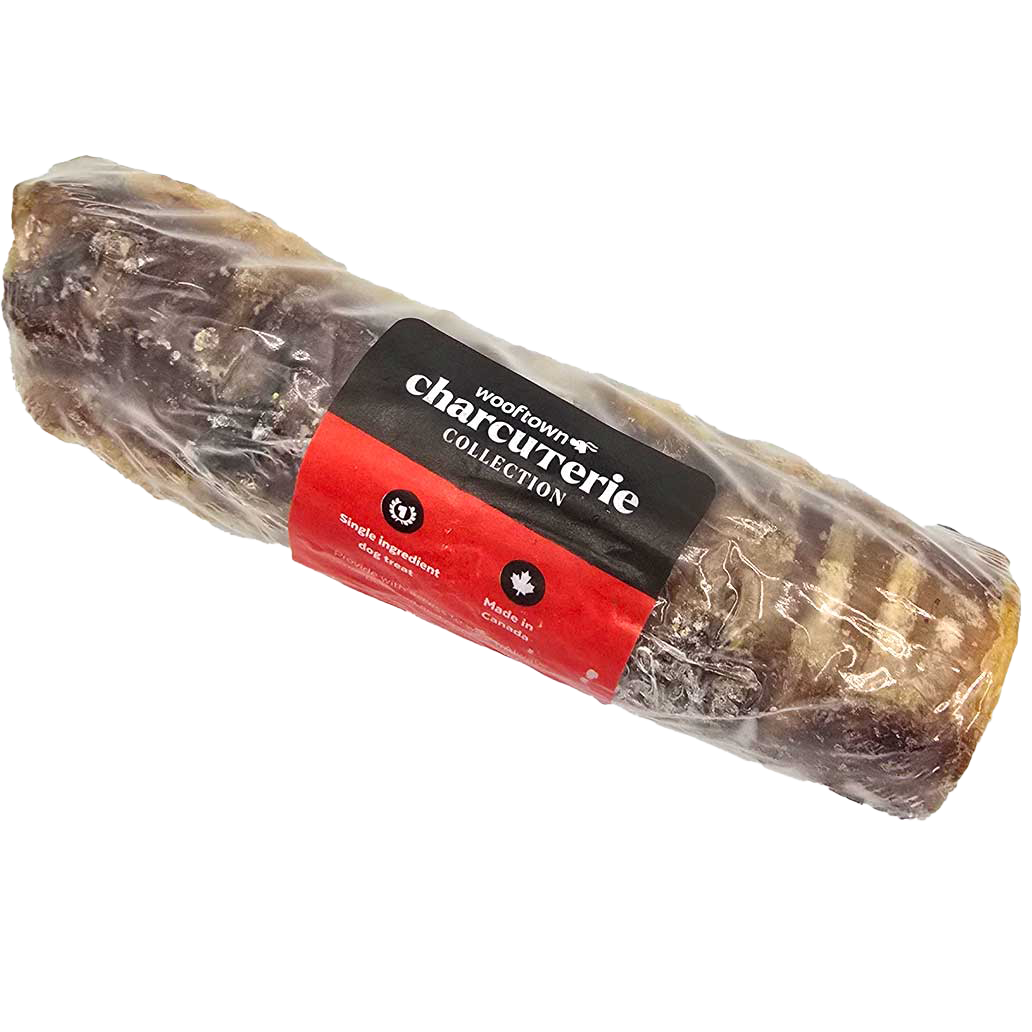 Independent pet supply business Wooftown needed labels for their new lines of store-brand dog chews. For their main collection, I developed a design system for adhesive flag tags that would function for the extensive variety of product names in the category, and includes a "chew meter" to help customers distinguish between their choices.